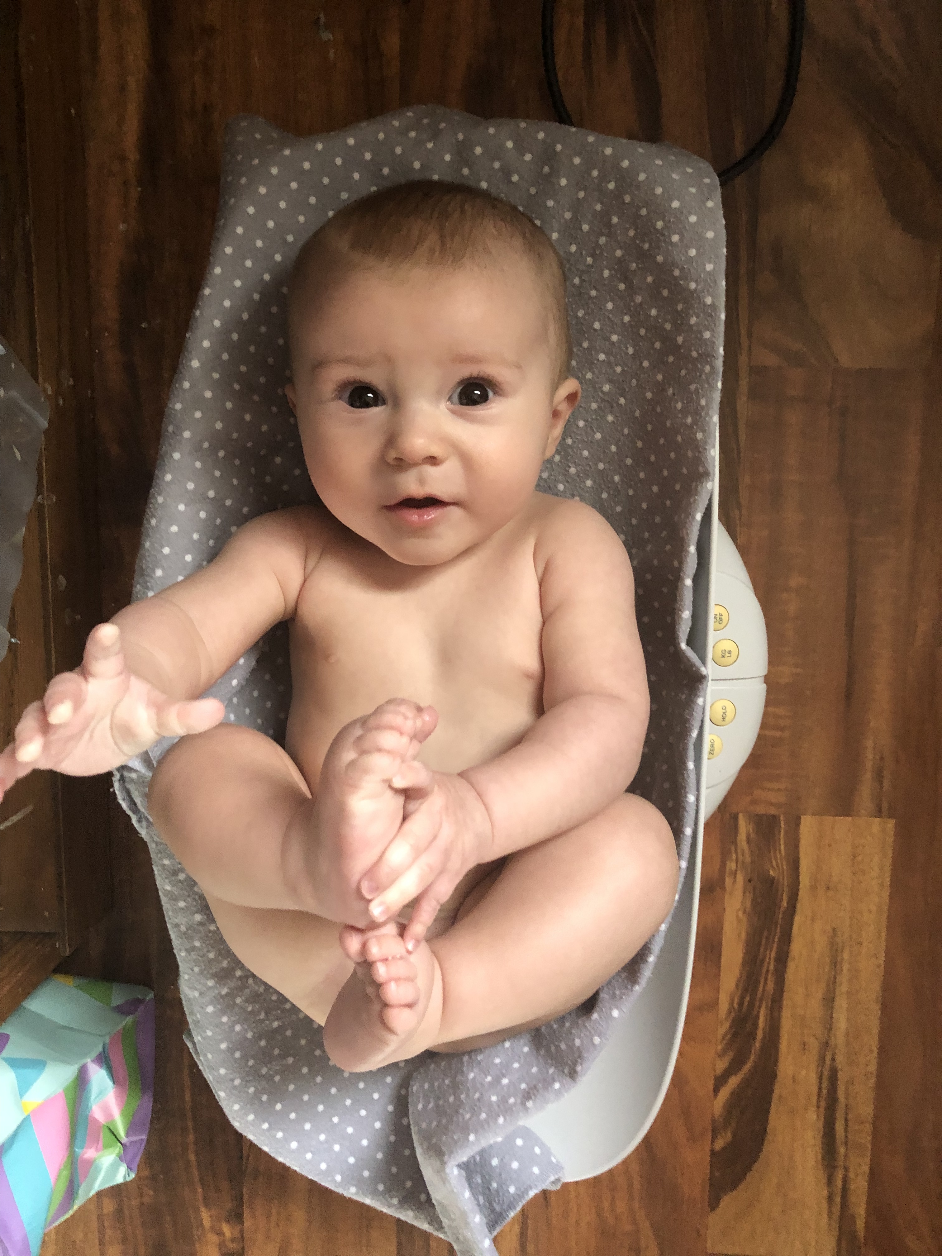 (Teddy on our home baby scale)
