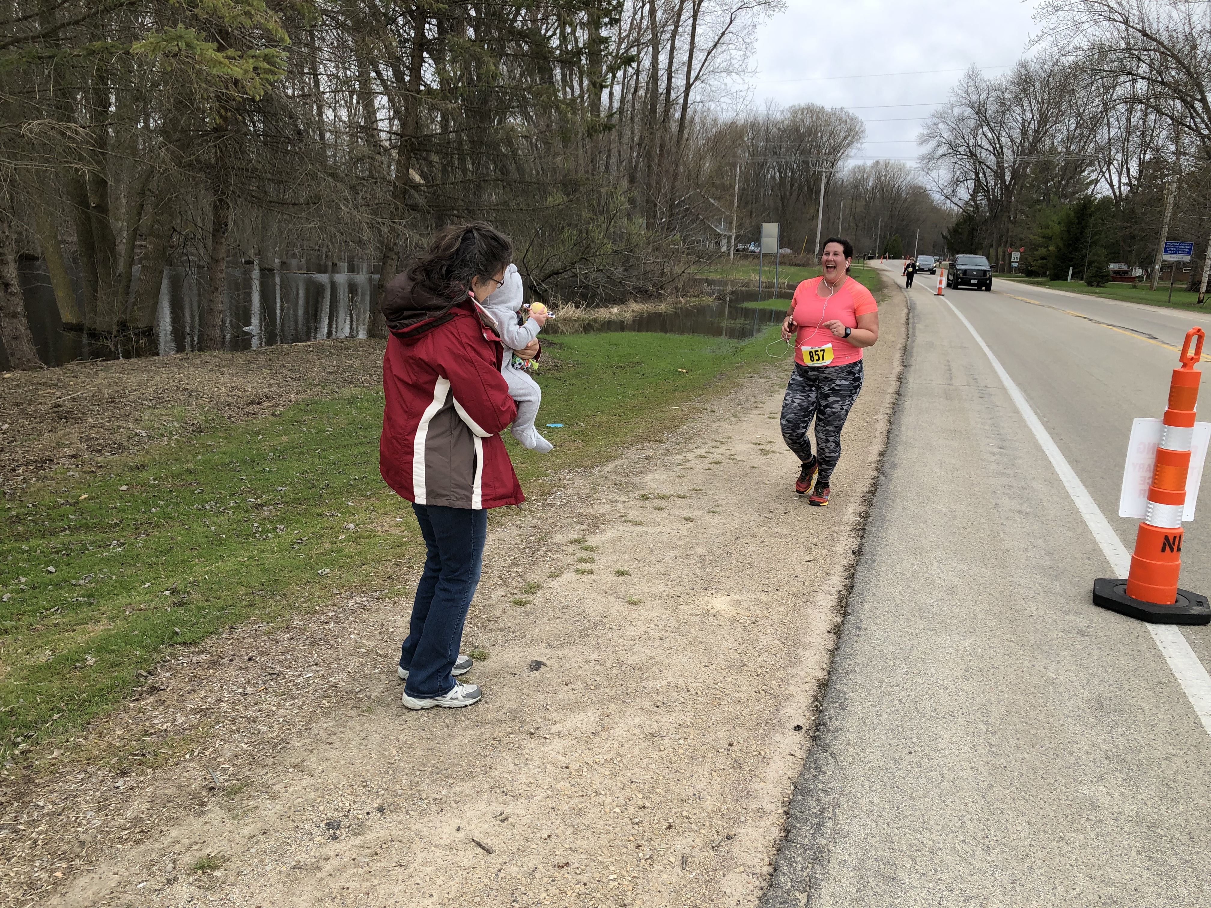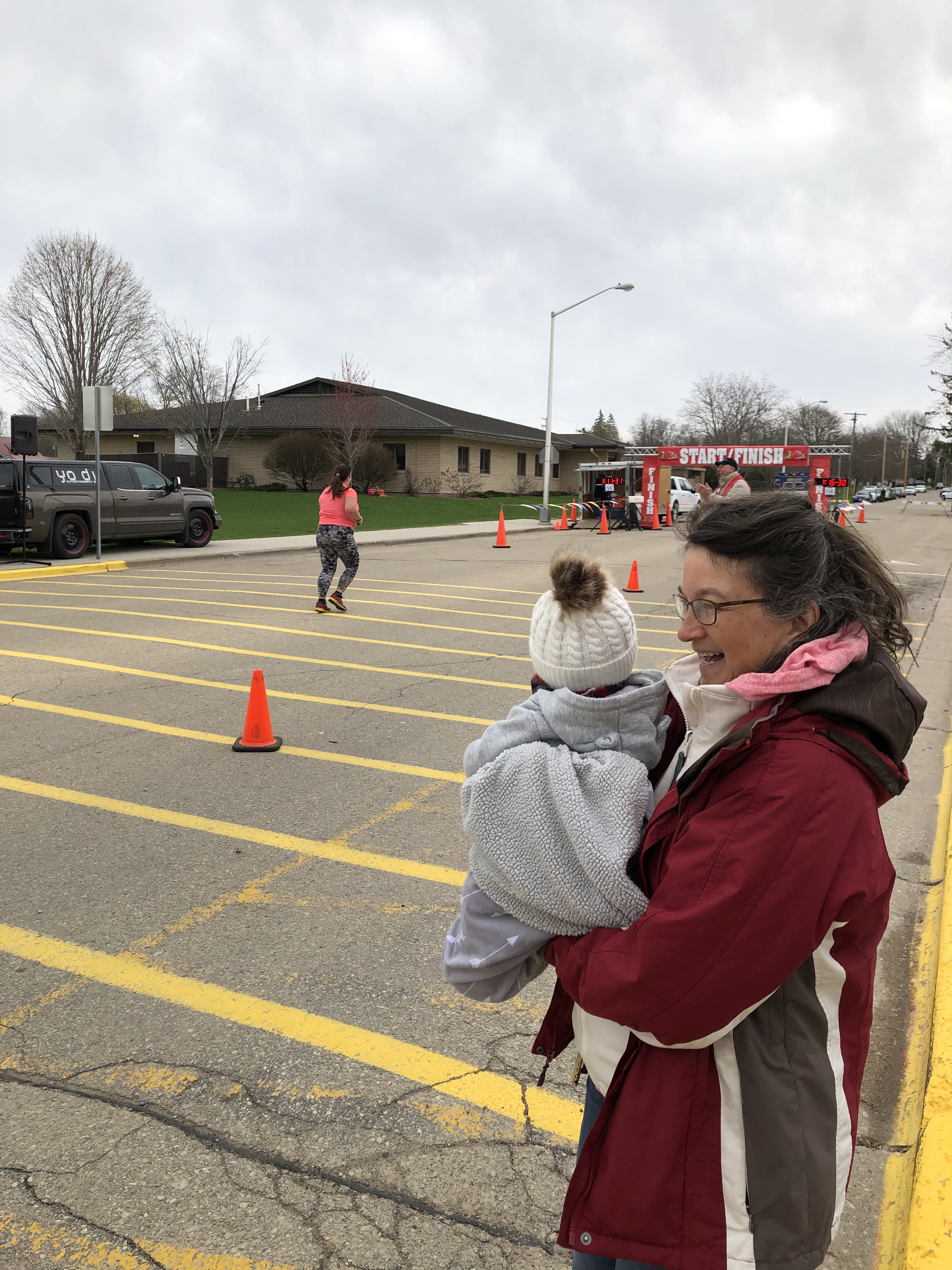 This year, I took some walking breaks. I thought about my form and prayed that I’m not doing any long-term damage by running while so heavy. I focused on my arms when my legs got tired. I kissed my baby when Brian brought him to see me on the course. Maybe Teddy drove himself?