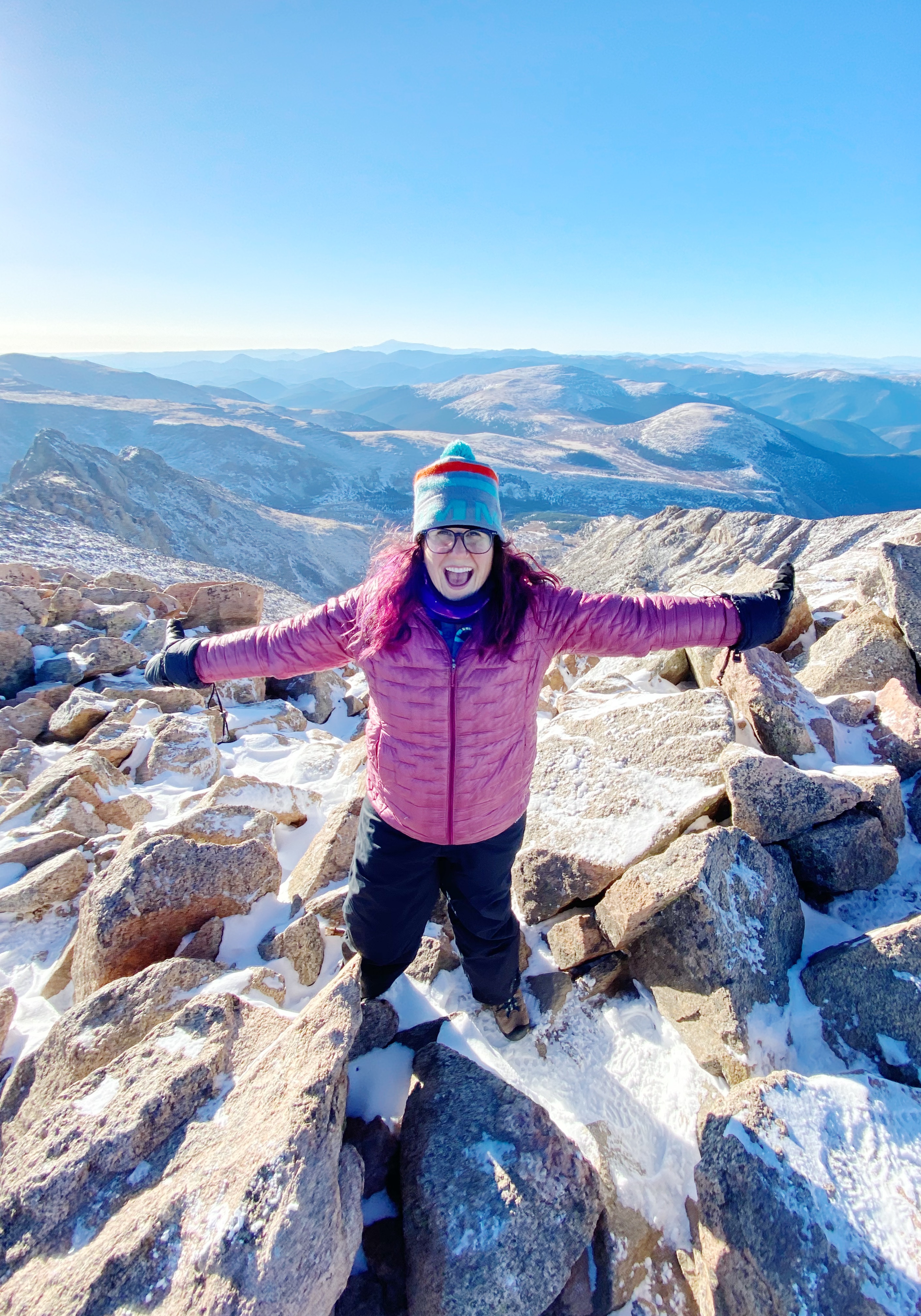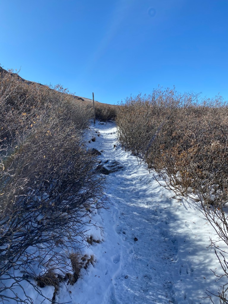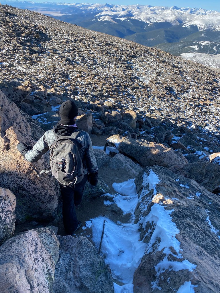 In hindsight, it’s a good thing that I couldn’t see the path ahead, because I probably wouldn’t have believed I could do it. Instead, I just focused on putting one step in front of the other. Sometimes my steps were pretty small, and I did take a few breaks to catch my breath. Karl was so reassuring and kept telling me that I was “crushing it,” which felt like a very Colorado thing to say. 🙂