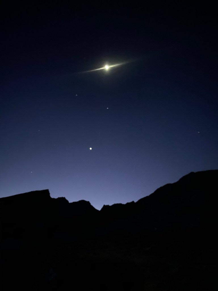 I looked back for the first time with the mountains in view, and gasped. You can see Mars shining away in the sky.