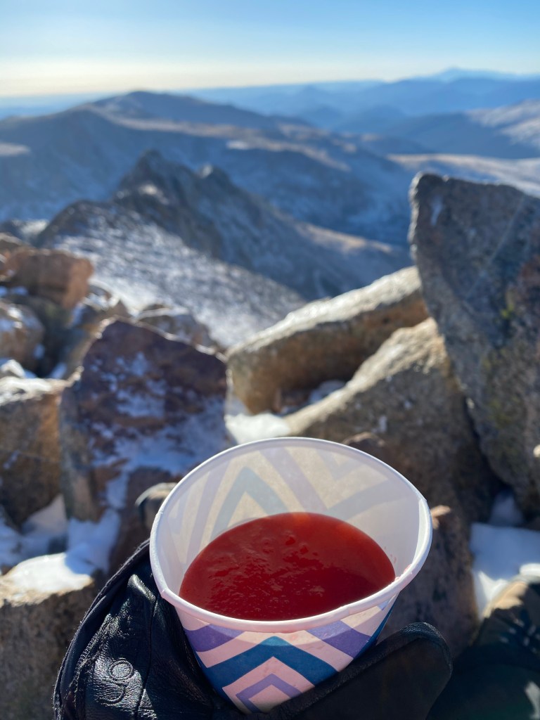 Karl brought margaritas to celebrate, and mixed them with mountain snow. How very Colorado.