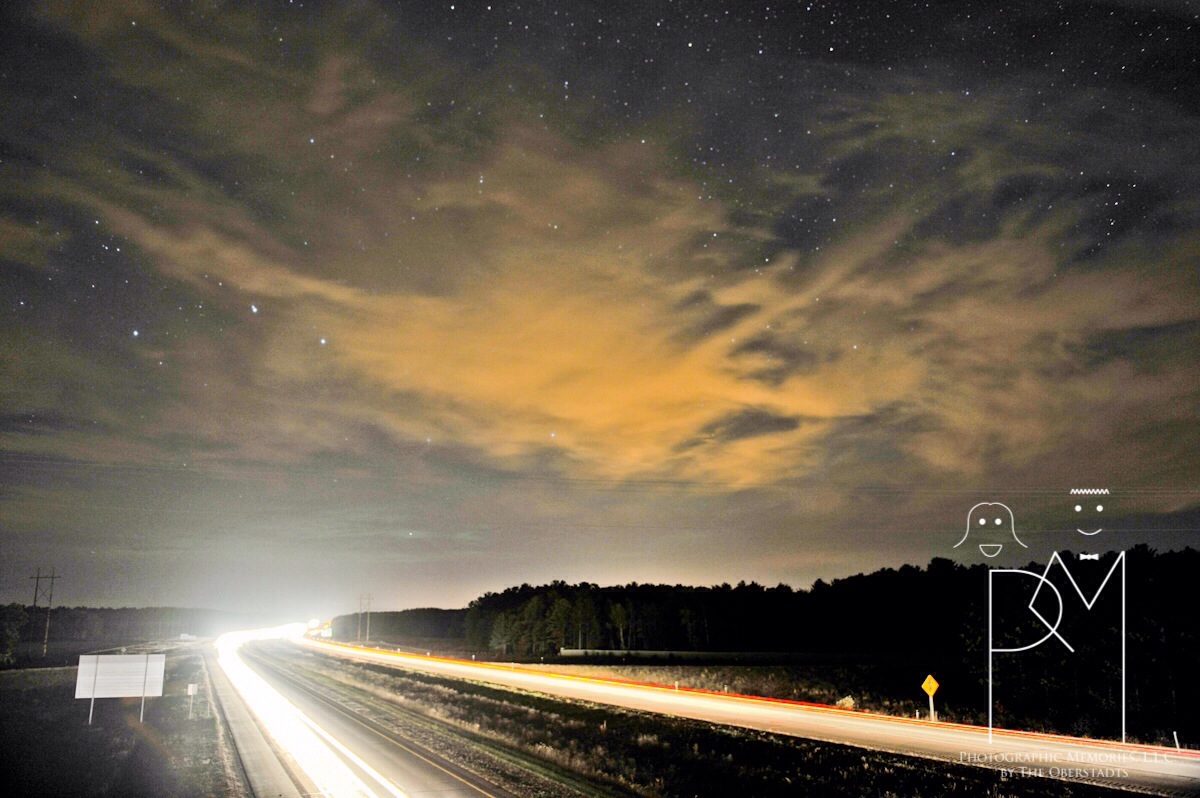 Several times, my shooting attempts have been foiled by clouds- it was predicted, and appeared, but I couldn’t see it through the overcast skies. I saw the forecast, and I was a little excited, but as sunset approached, so did a storm. It rained from 8-9:30ish, and I thought for sure the clouds would be in my way. I sat down and watched the 10:00 news with Brian, and kept anxiously peeking out the window every five minutes, until I finally decided to head out around 10:30 and give it a go.
