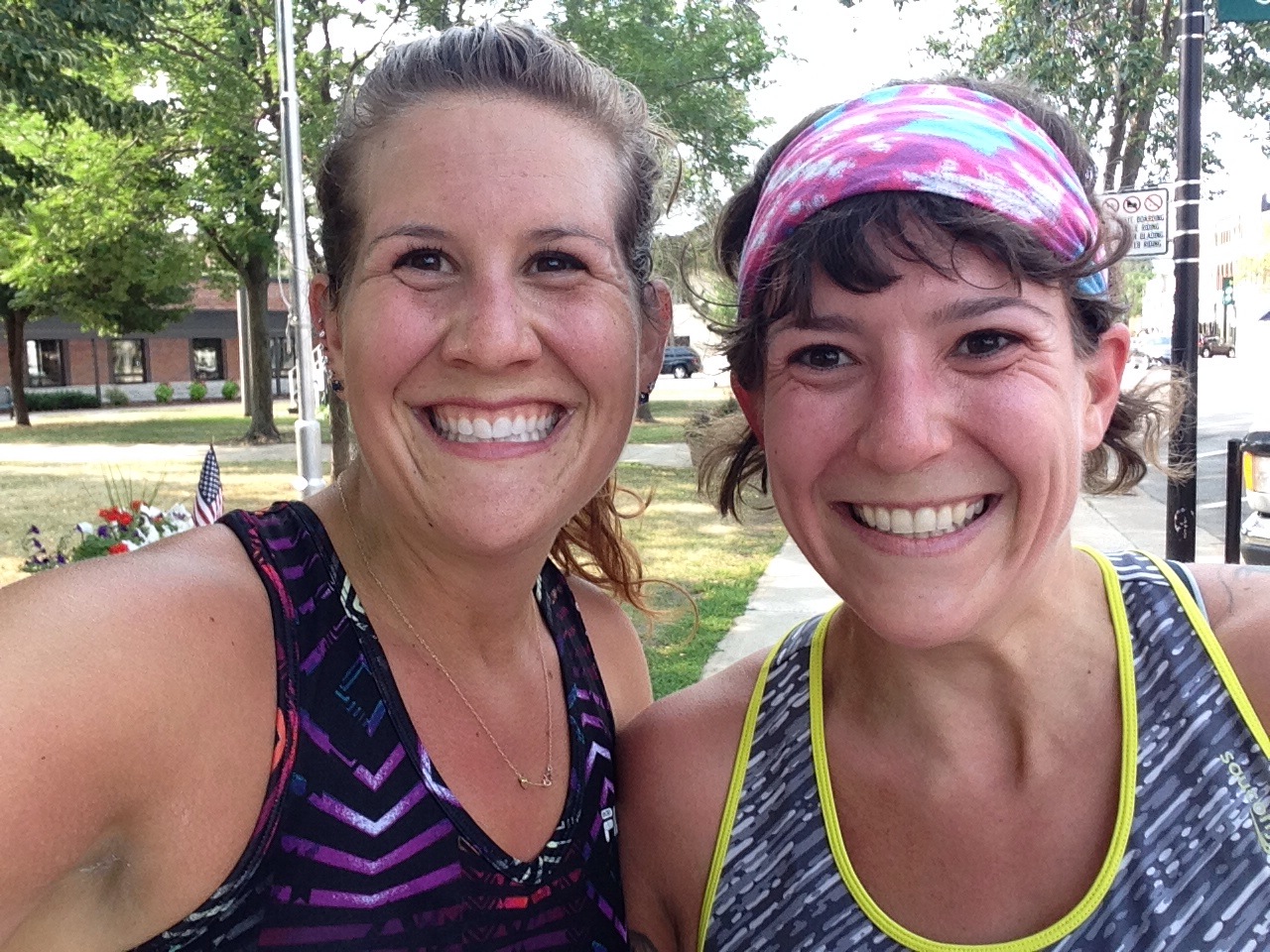 We got home late Friday night, and I was exhausted, but I climbed out of the covers just early enough to run the Violet Thompson 5K, a fundraiser for a very special little girl in town. I had no idea if I’d know anyone there, but sure enough, I found George and Marc around mile 1.5. π