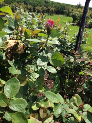 After we said goodbye to our wonderful hotel room, we went to the Rose Garden. The roses aren’t quite ready, but I found one bud that is almost ready to pop open!