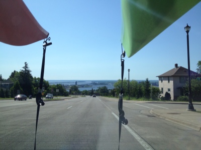 We had a beautiful drive- I love looking out our windshield at kayaks with a backdrop of nature. Like trees and Lake Superior.