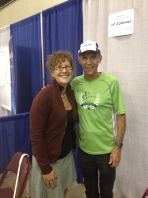 On our way out of the expo, Brian saw Jeff Galloway’s booth with Jeff Galloway standing in it! He was a featured speaker at 2 pm, so I knew I was going to miss him, and I didn’t think he was going to stick around for the expo. In any event, he’s so nice! He gave me a hug and said that he was so happy that he helped me through my first marathon and that I’m still running.