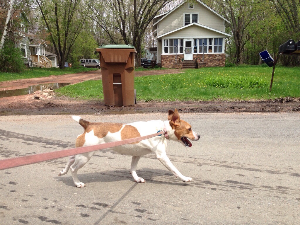 I finished the race in the morning, ate a ton of frozen yogurt, slept in the car on the way home, and headed straight to teach ballroom. I had tap dance rehearsal on Monday and Tuesday, and I was still feeling pretty sore, especially in my left foot. On Wednesday, I took Abbie for a walk in my house slippers, since my foot was still hurting. I was hoping my body just needed a good shakeout run and a stretch, so on Thursday morning, I laced up my shoes and took Abbie out to the river. As soon as I tied the bow on my left shoe, there was some serious pain. I was hoping it wasn’t anything too bad, and left anyway. Abbie was so happy to get out of the house… she is a typically active Jack Russell, and she doesn’t care if I’m resting post-marathon or not. She needs her exercise! π